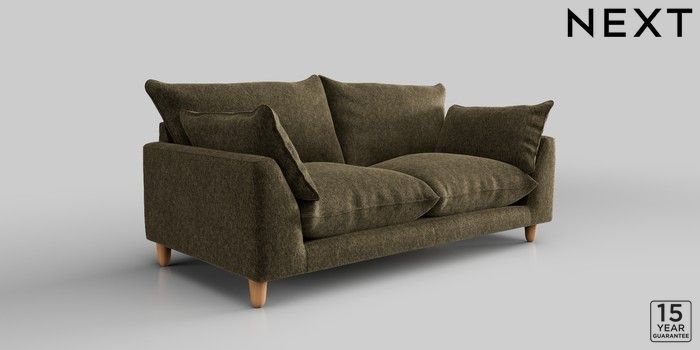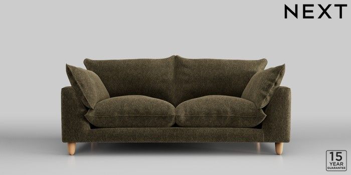 7.2.10 Noa Deep Relaxed Sit 3 Seater Small Sofa Cotswold Chenille Dark Green High Leg - Light | Made Click here to use our website with more accessibility support, for example screen readers