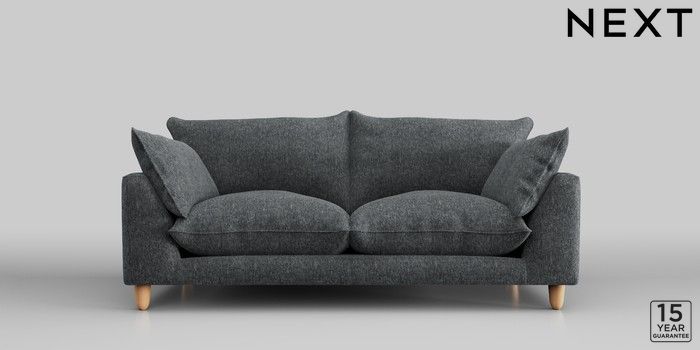 7.2.10 Noa Deep Relaxed Sit 3 Seater Small Sofa Cotswold Chenille Dark Grey High Leg - Light | Made Click here to use our website with more accessibility support, for example screen readers