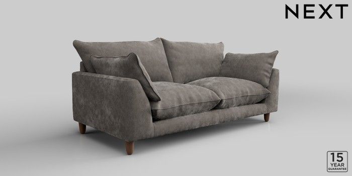 7.2.10 Noa Deep Relaxed Sit 3 Seater Small Sofa Distressed Velour French Grey High Leg - Mid | Made Click here to use our website with more accessibility support, for example screen readers