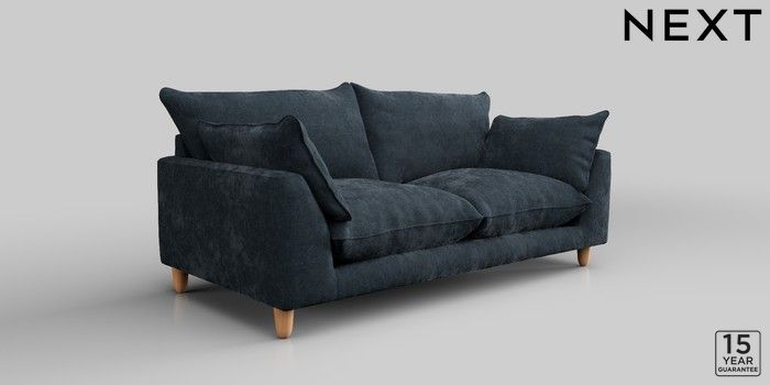 7.2.10 Noa Deep Relaxed Sit 3 Seater Small Sofa Distressed Velour Midnight Blue High Leg - Light | Made Click here to use our website with more accessibility support, for example screen readers