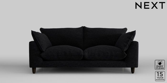 7.2.10 Noa Deep Relaxed Sit 3 Seater Small Sofa Fine Chenille Easy Clean Black High Leg - Dark | Made Click here to use our website with more accessibility support, for example screen readers