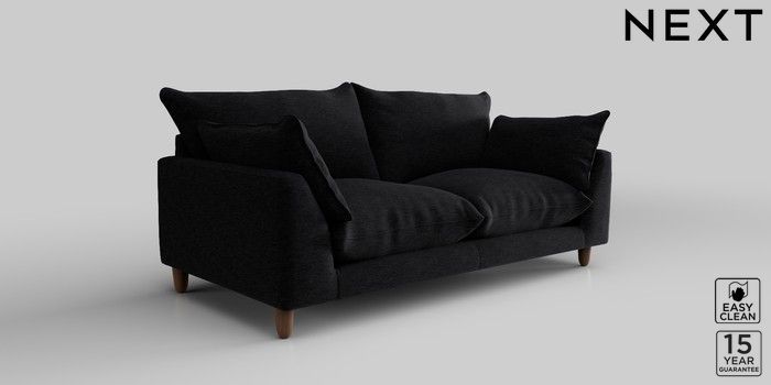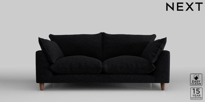 7.2.10 Noa Deep Relaxed Sit 3 Seater Small Sofa Fine Chenille Easy Clean Black High Leg - Mid | Made Click here to use our website with more accessibility support, for example screen readers