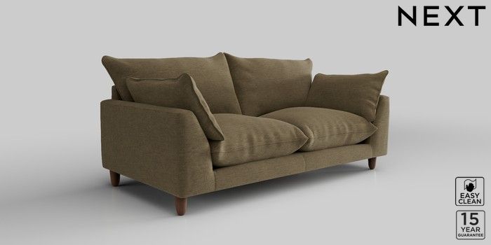 7.2.10 Noa Deep Relaxed Sit 3 Seater Small Sofa Fine Chenille Easy Clean Dark Moss Green High Leg - Mid | Made Click here to use our website with more accessibility support, for example screen readers