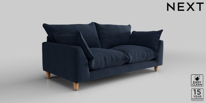 7.2.10 Noa Deep Relaxed Sit 3 Seater Small Sofa Fine Chenille Easy Clean Dark Navy Blue High Leg - Light | Made Click here to use our website with more accessibility support, for example screen readers