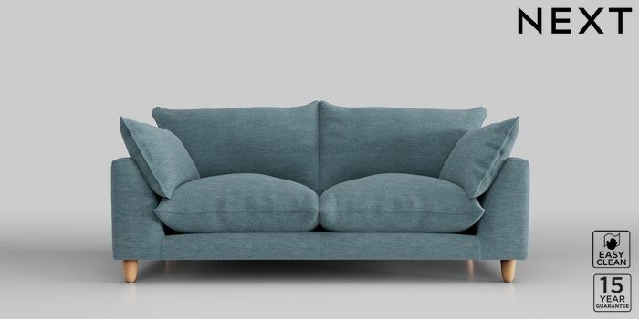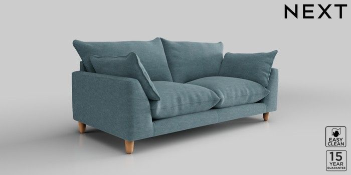7.2.10 Noa Deep Relaxed Sit 3 Seater Small Sofa Fine Chenille Easy Clean Mid Blue High Leg - Light | Made Click here to use our website with more accessibility support, for example screen readers