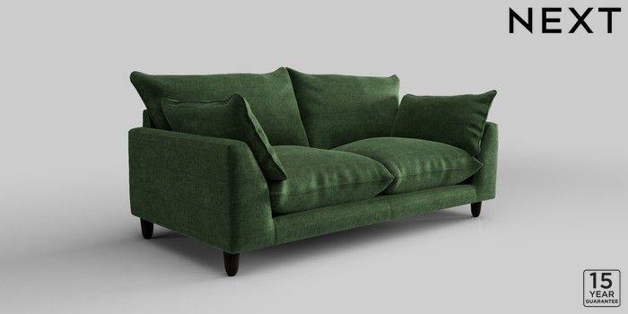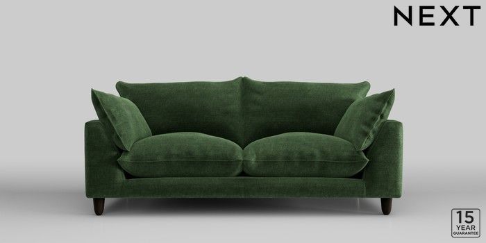 7.2.10 Noa Deep Relaxed Sit 3 Seater Small Sofa Luxe Chenille Dark Green High Leg - Dark | Made Click here to use our website with more accessibility support, for example screen readers