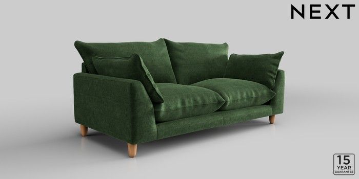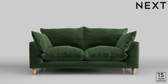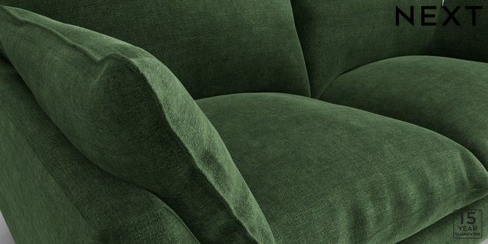 7.2.10 Noa Deep Relaxed Sit 3 Seater Small Sofa Luxe Chenille Dark Green High Leg - Light | Made Click here to use our website with more accessibility support, for example screen readers