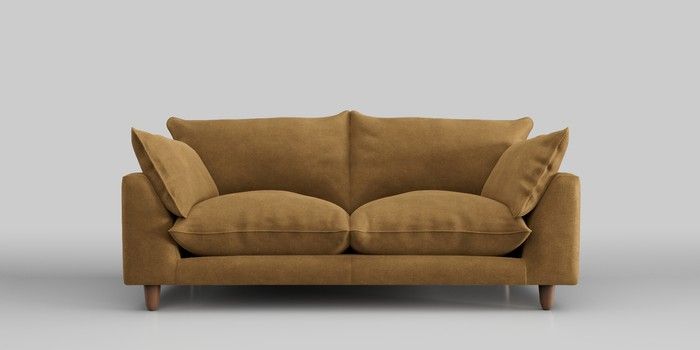7.2.10 Noa Deep Relaxed Sit 3 Seater Small Sofa Luxe Chenille Honey Yellow High Leg - Mid | Made Click here to use our website with more accessibility support, for example screen readers