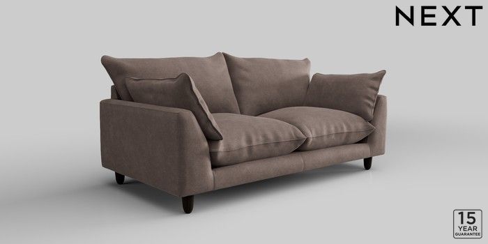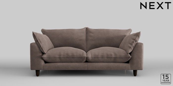 7.2.10 Noa Deep Relaxed Sit 3 Seater Small Sofa Luxe Chenille Mink Brown High Leg - Dark | Made Click here to use our website with more accessibility support, for example screen readers
