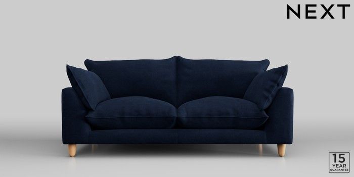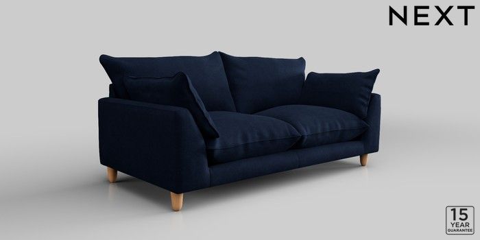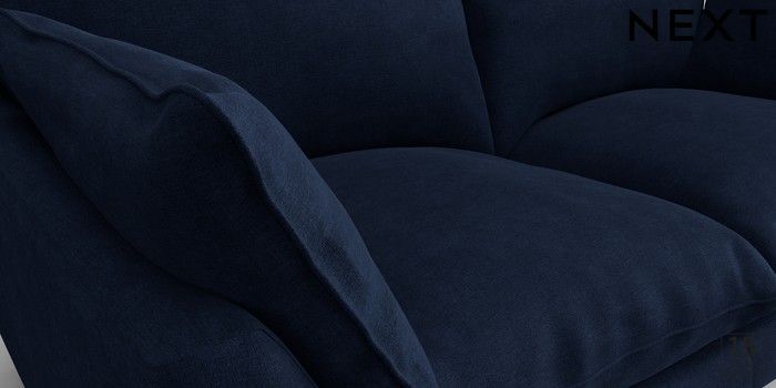 7.2.10 Noa Deep Relaxed Sit 3 Seater Small Sofa Luxe Chenille Navy Blue High Leg - Light | Made Click here to use our website with more accessibility support, for example screen readers