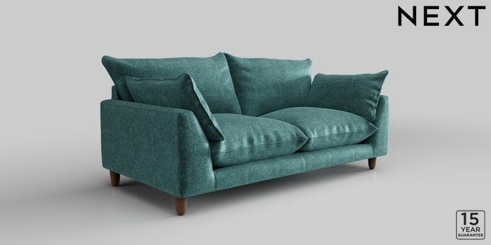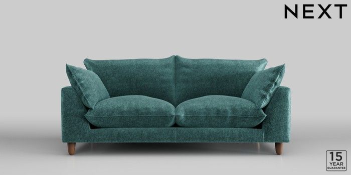 7.2.10 Noa Deep Relaxed Sit 3 Seater Small Sofa Plush Chenille Dark Teal Green High Leg - Mid | Made Click here to use our website with more accessibility support, for example screen readers