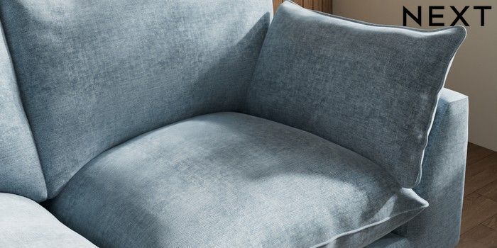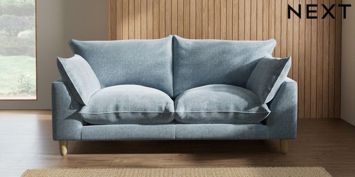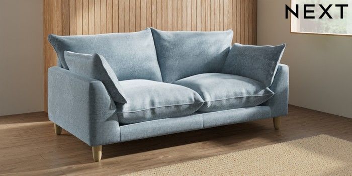 7.2.10 Noa Deep Relaxed Sit 3 Seater Small Sofa Plush Chenille Light Blue High Leg - Light | Made Click here to use our website with more accessibility support, for example screen readers