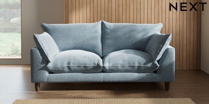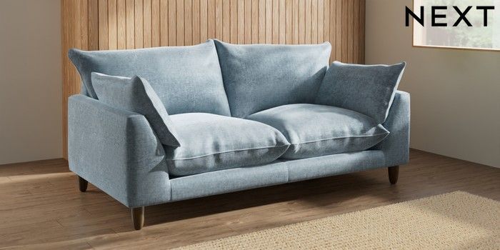 7.2.10 Noa Deep Relaxed Sit 3 Seater Small Sofa Plush Chenille Light Blue High Leg - Mid | Made Click here to use our website with more accessibility support, for example screen readers