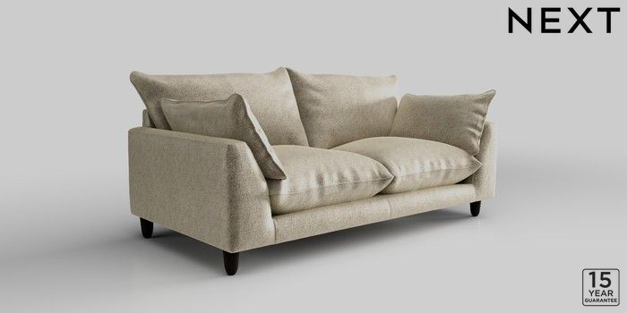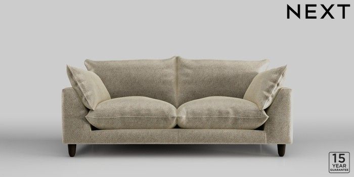 7.2.10 Noa Deep Relaxed Sit 3 Seater Small Sofa Plush Chenille Light Natural High Leg - Dark | Made Click here to use our website with more accessibility support, for example screen readers