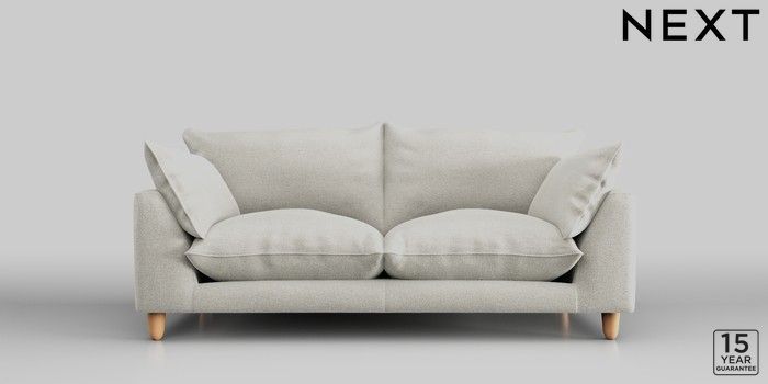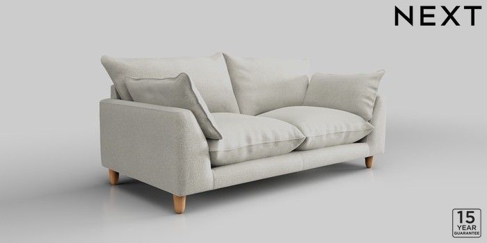 7.2.10 Noa Deep Relaxed Sit 3 Seater Small Sofa Plush Chenille Oyster High Leg - Light | Made Click here to use our website with more accessibility support, for example screen readers