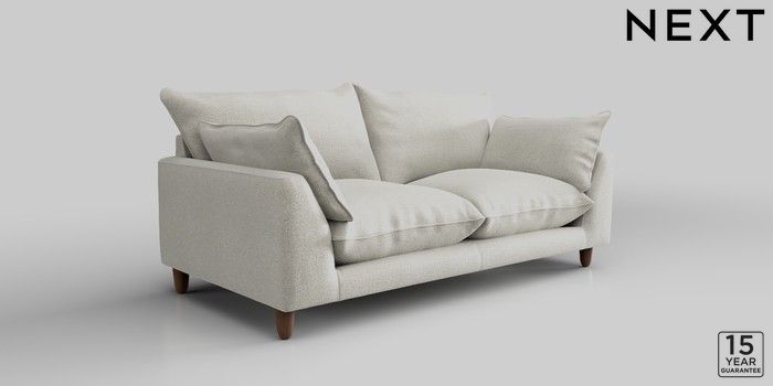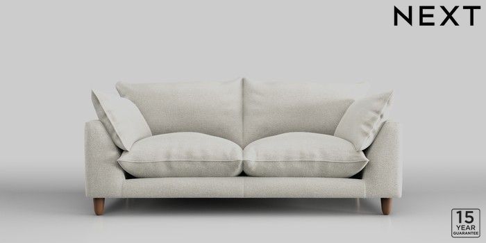 7.2.10 Noa Deep Relaxed Sit 3 Seater Small Sofa Plush Chenille Oyster High Leg - Mid | Made Click here to use our website with more accessibility support, for example screen readers