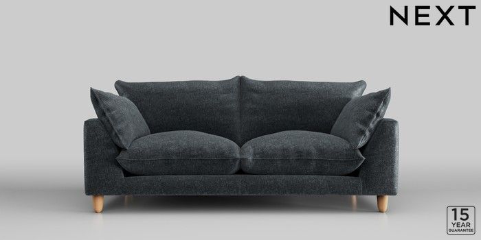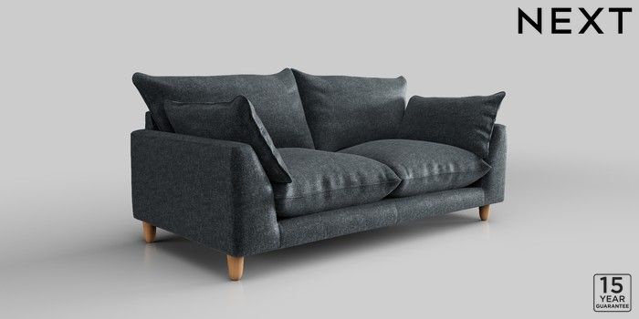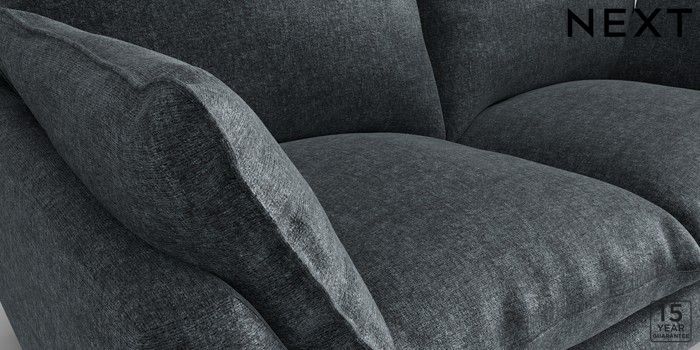 7.2.10 Noa Deep Relaxed Sit 3 Seater Small Sofa Plush Chenille Slate Blue High Leg - Light | Made Click here to use our website with more accessibility support, for example screen readers