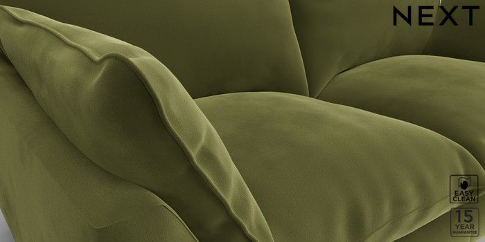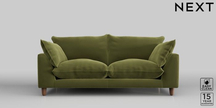 7.2.10 Noa Deep Relaxed Sit 3 Seater Small Sofa Plush Velvet Easy Clean Mid Olive Green High Leg - Mid | Made Click here to use our website with more accessibility support, for example screen readers