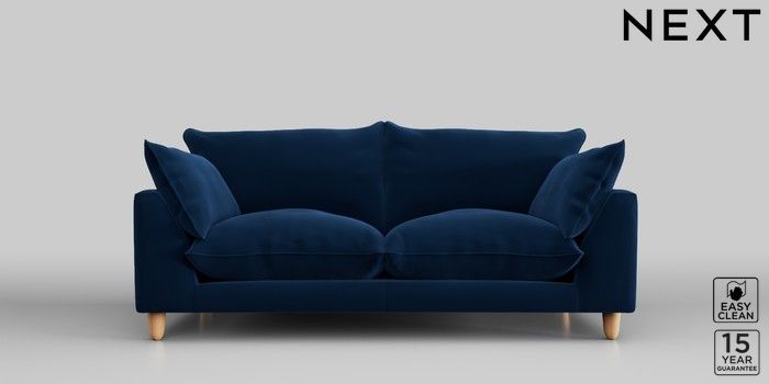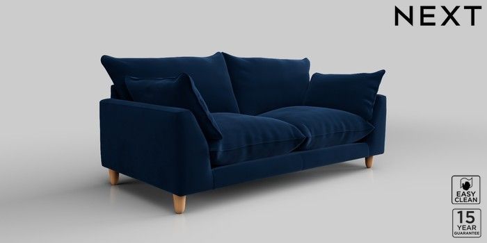 7.2.10 Noa Deep Relaxed Sit 3 Seater Small Sofa Plush Velvet Easy Clean Navy Blue High Leg - Light | Made Click here to use our website with more accessibility support, for example screen readers