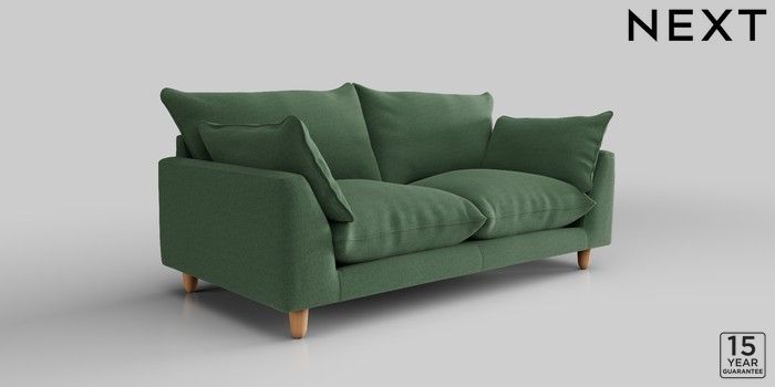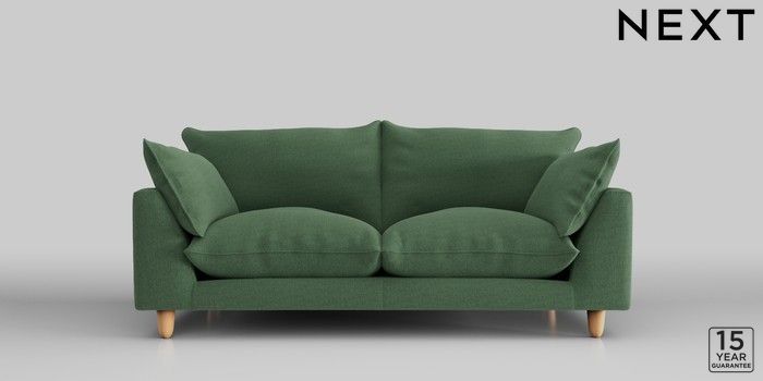 7.2.10 Noa Deep Relaxed Sit 3 Seater Small Sofa Relaxed Linen Look Dark Green High Leg - Light | Made Click here to use our website with more accessibility support, for example screen readers