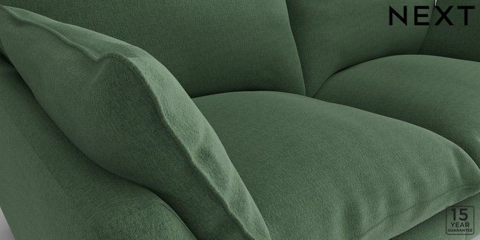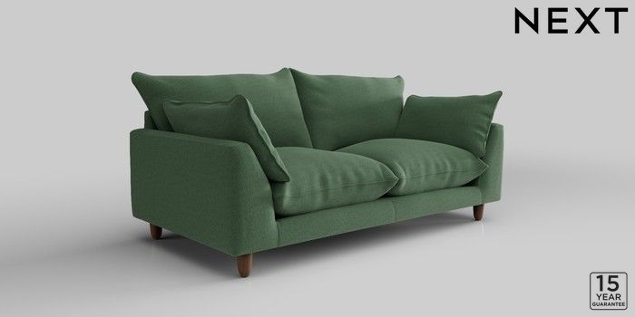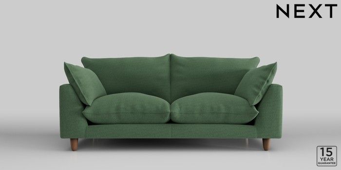 7.2.10 Noa Deep Relaxed Sit 3 Seater Small Sofa Relaxed Linen Look Dark Green High Leg - Mid | Made Click here to use our website with more accessibility support, for example screen readers