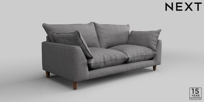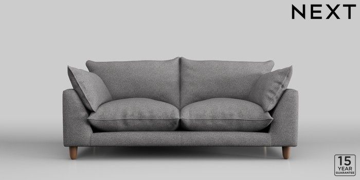 7.2.10 Noa Deep Relaxed Sit 3 Seater Small Sofa Studio Chenille Mid Grey High Leg - Mid | Made Click here to use our website with more accessibility support, for example screen readers