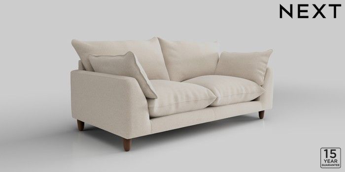 7.2.10 Noa Deep Relaxed Sit 3 Seater Small Sofa Studio Chenille Oyster High Leg - Mid | Made Click here to use our website with more accessibility support, for example screen readers