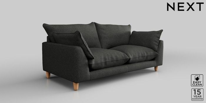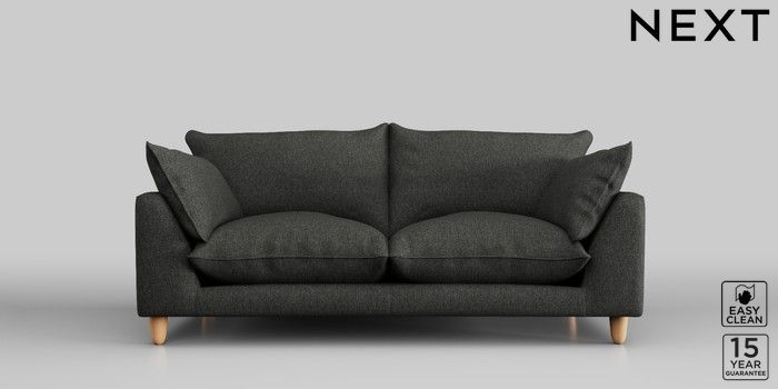 7.2.10 Noa Deep Relaxed Sit 3 Seater Small Sofa Tweedy Blend Easy Clean Charcoal Grey High Leg - Light | Made Click here to use our website with more accessibility support, for example screen readers
