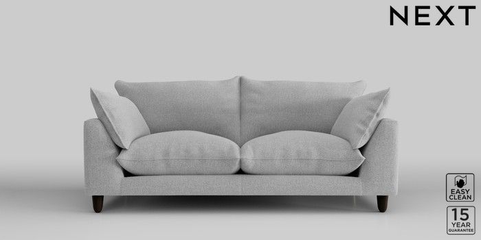 7.2.10 Noa Deep Relaxed Sit 3 Seater Small Sofa Tweedy Blend Easy Clean Light Silver Grey High Leg - Dark | Made Click here to use our website with more accessibility support, for example screen readers