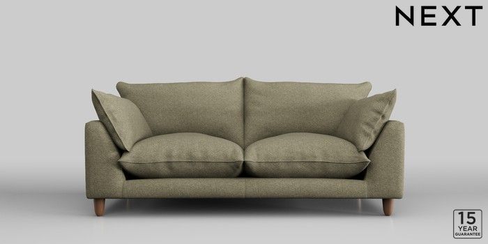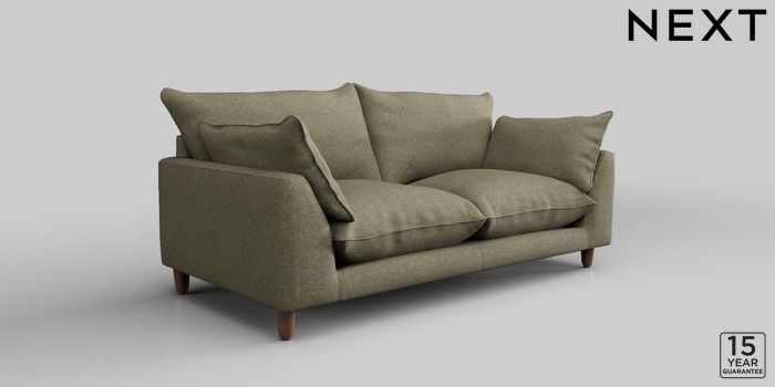 7.2.10 Noa Deep Relaxed Sit 3 Seater Small Sofa Tweedy Chenille Mid Moss Green High Leg - Mid | Made Click here to use our website with more accessibility support, for example screen readers