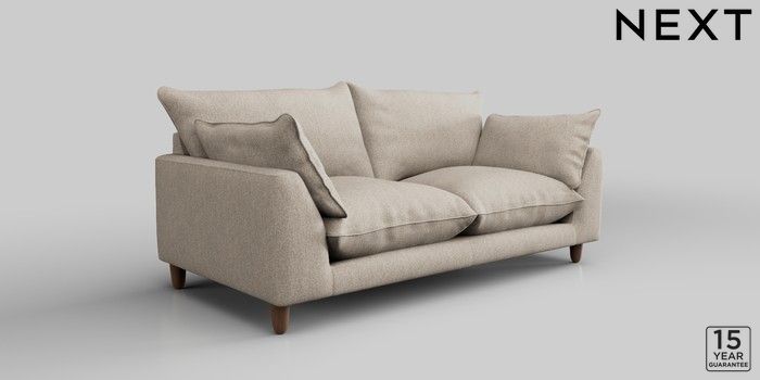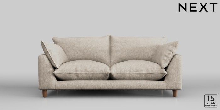 7.2.10 Noa Deep Relaxed Sit 3 Seater Small Sofa Tweedy Chenille Mid Natural High Leg - Mid | Made Click here to use our website with more accessibility support, for example screen readers