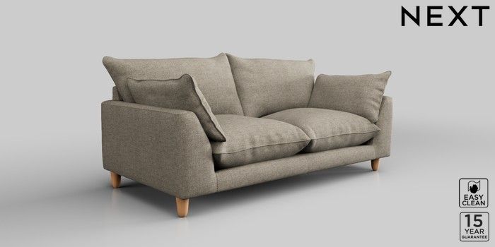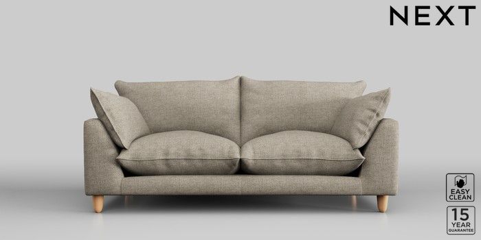7.2.10 Noa Deep Relaxed Sit 3 Seater Small Sofa Woven Chenille Easy Clean Mid Natural High Leg - Light | Made Click here to use our website with more accessibility support, for example screen readers
