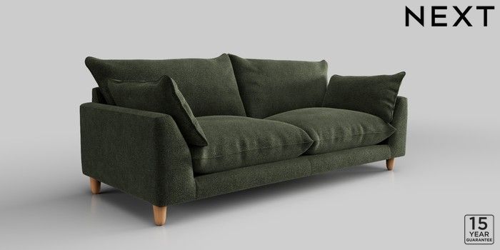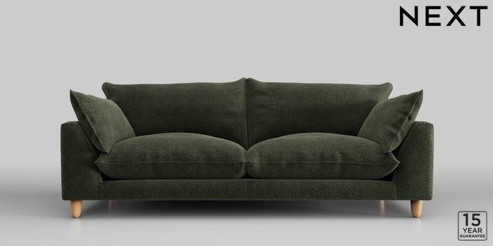 7.2.10 Noa Deep Relaxed Sit 3 Seater Sofa Boucle Chenille Dark Moss Green High Leg - Light | Made Click here to use our website with more accessibility support, for example screen readers