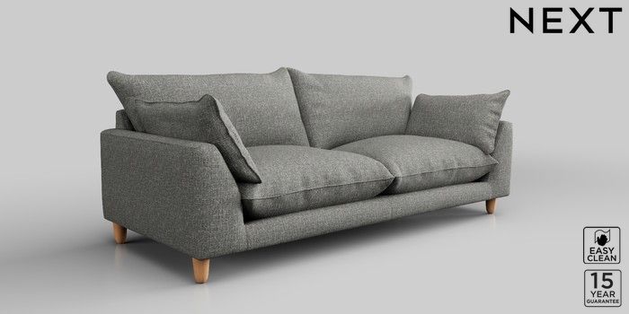 7.2.10 Noa Deep Relaxed Sit 3 Seater Sofa Chunky Boucle Easy Clean Mid Grey High Leg - Light | Made Click here to use our website with more accessibility support, for example screen readers