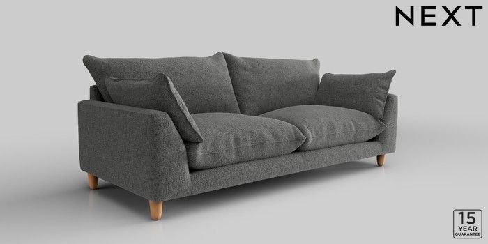 7.2.10 Noa Deep Relaxed Sit 3 Seater Sofa Chunky Chenille Dark Grey High Leg - Light | Made Click here to use our website with more accessibility support, for example screen readers