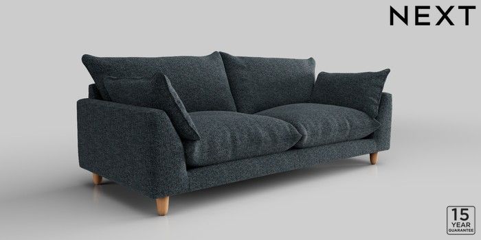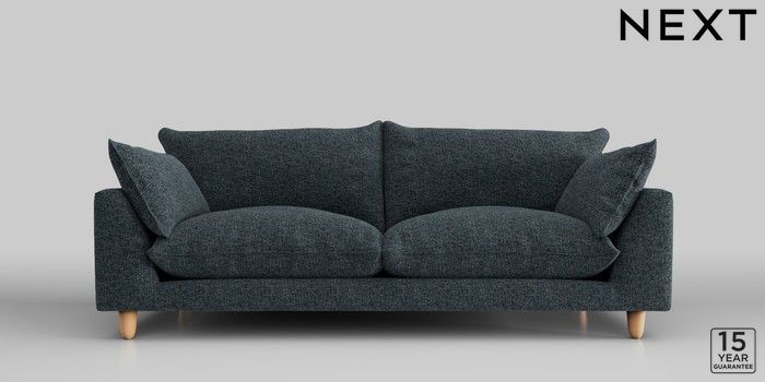 7.2.10 Noa Deep Relaxed Sit 3 Seater Sofa Chunky Chenille Dark Navy Blue High Leg - Light | Made Click here to use our website with more accessibility support, for example screen readers