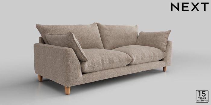 7.2.10 Noa Deep Relaxed Sit 3 Seater Sofa Chunky Chenille Light Dove High Leg - Light | Made Click here to use our website with more accessibility support, for example screen readers