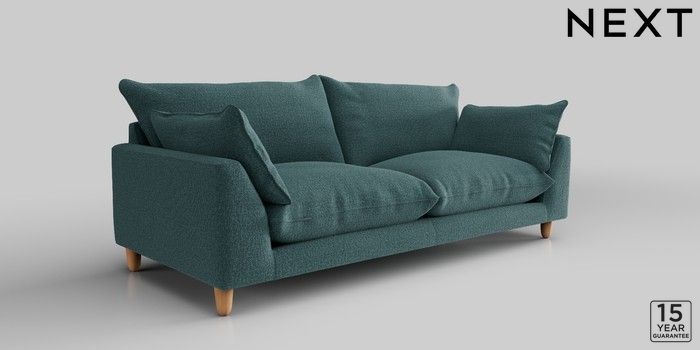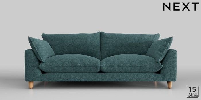 7.2.10 Noa Deep Relaxed Sit 3 Seater Sofa Chunky Chenille Mid Teal Green High Leg - Light | Made Click here to use our website with more accessibility support, for example screen readers