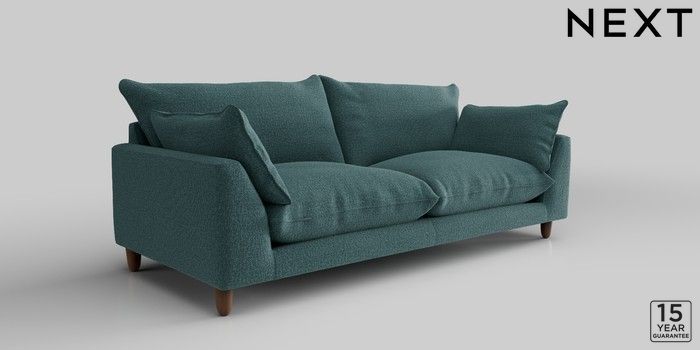 7.2.10 Noa Deep Relaxed Sit 3 Seater Sofa Chunky Chenille Mid Teal Green High Leg - Mid | Made Click here to use our website with more accessibility support, for example screen readers