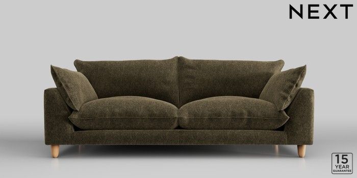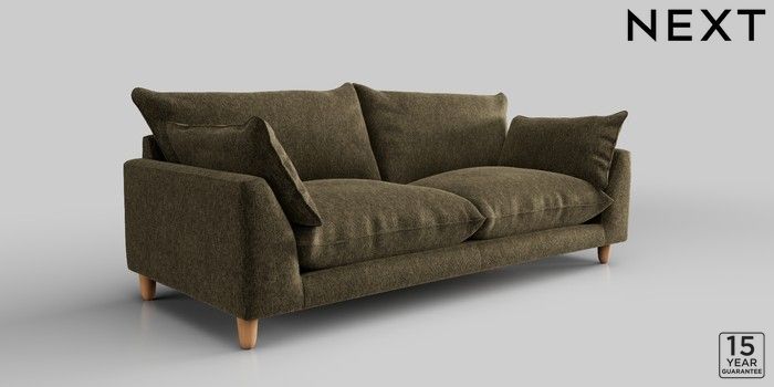 7.2.10 Noa Deep Relaxed Sit 3 Seater Sofa Cotswold Chenille Dark Green High Leg - Light | Made Click here to use our website with more accessibility support, for example screen readers