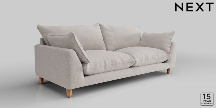 7.2.10 Noa Deep Relaxed Sit 3 Seater Sofa Cotswold Chenille Oyster High Leg - Light | Made Click here to use our website with more accessibility support, for example screen readers