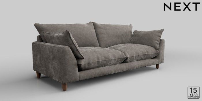 7.2.10 Noa Deep Relaxed Sit 3 Seater Sofa Distressed Velour French Grey High Leg - Mid | Made Click here to use our website with more accessibility support, for example screen readers