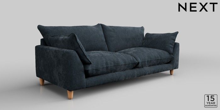 7.2.10 Noa Deep Relaxed Sit 3 Seater Sofa Distressed Velour Midnight Blue High Leg - Light | Made Click here to use our website with more accessibility support, for example screen readers