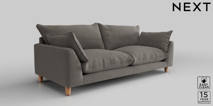 7.2.10 Noa Deep Relaxed Sit 3 Seater Sofa Fine Chenille Easy Clean Dark Smoke Grey High Leg - Light | Made Click here to use our website with more accessibility support, for example screen readers