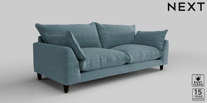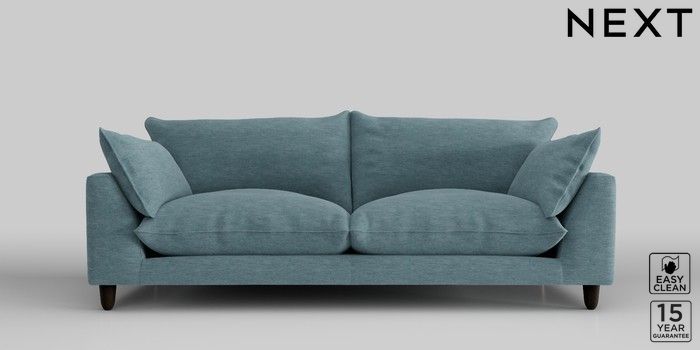 7.2.10 Noa Deep Relaxed Sit 3 Seater Sofa Fine Chenille Easy Clean Mid Blue High Leg - Dark | Made Click here to use our website with more accessibility support, for example screen readers