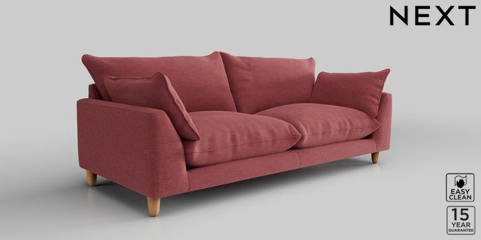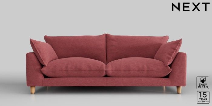 7.2.10 Noa Deep Relaxed Sit 3 Seater Sofa Fine Chenille Easy Clean Mid Pink High Leg - Light | Made Click here to use our website with more accessibility support, for example screen readers