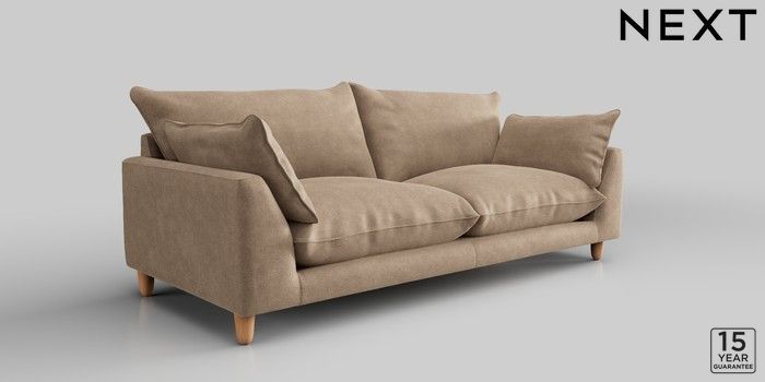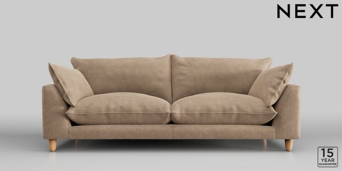 7.2.10 Noa Deep Relaxed Sit 3 Seater Sofa Luxe Chenille Mid Camel Beige High Leg - Light | Made Click here to use our website with more accessibility support, for example screen readers