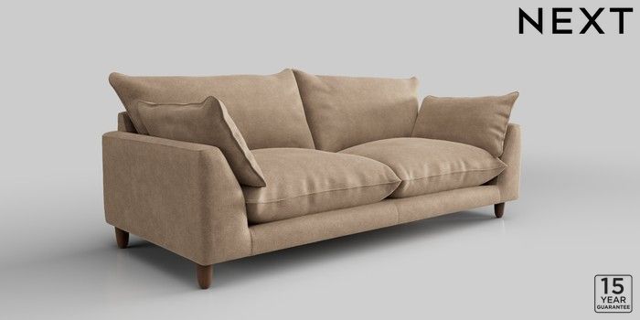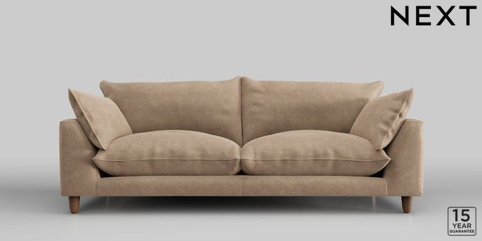 7.2.10 Noa Deep Relaxed Sit 3 Seater Sofa Luxe Chenille Mid Camel Beige High Leg - Mid | Made Click here to use our website with more accessibility support, for example screen readers