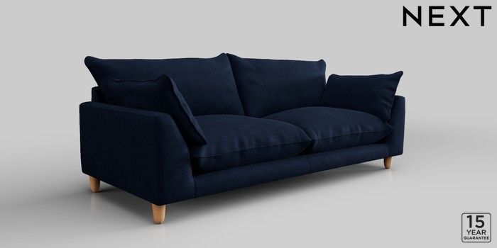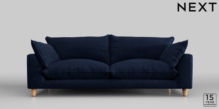 7.2.10 Noa Deep Relaxed Sit 3 Seater Sofa Luxe Chenille Navy Blue High Leg - Light | Made Click here to use our website with more accessibility support, for example screen readers