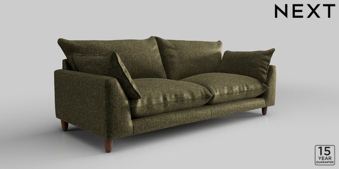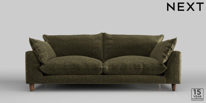 7.2.10 Noa Deep Relaxed Sit 3 Seater Sofa Plush Chenille Moss Green High Leg - Mid | Made Click here to use our website with more accessibility support, for example screen readers